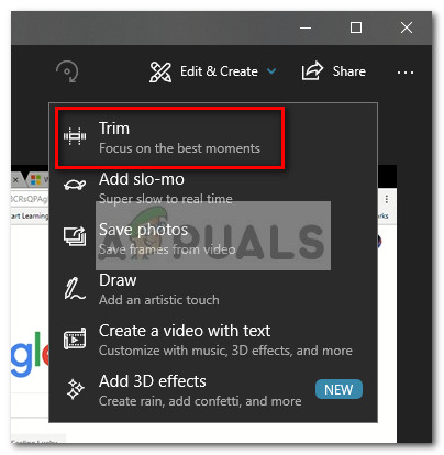 - Once the video is open in the Photos app, hit the Edit & Create button in the top-right corner and choose Trim.