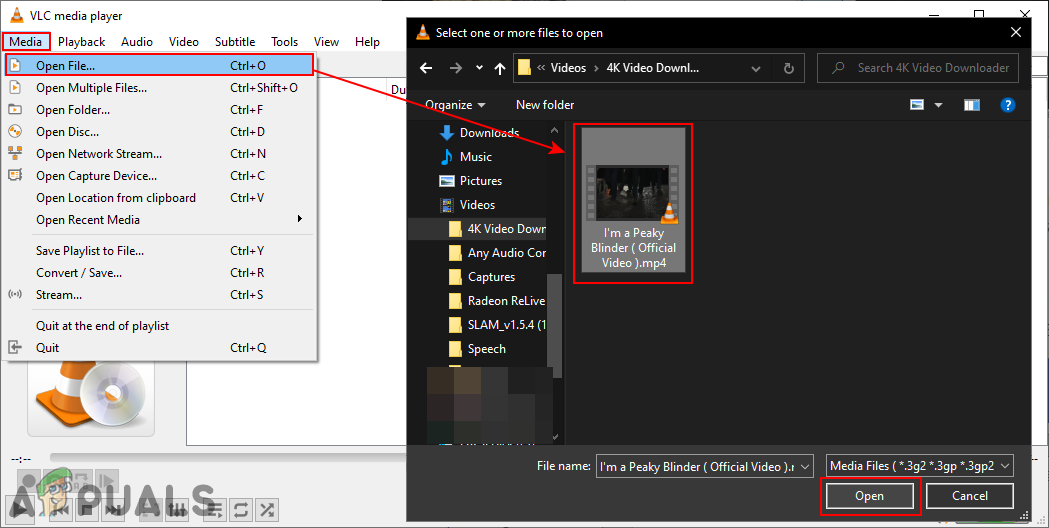 Opening the VLC media player - Now click on the File menu and choose the Open option. Select the video file that you want to trim/cut in VLC and open it.