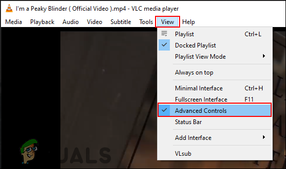 Opening a Video file - Click on the View menu in the menu bar and choose the Advanced Controls option. This will enable some advanced buttons over the top of default control buttons.