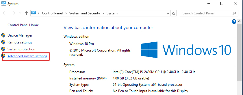 2. Inside the System window, click on Advanced System Settings located in the left pane.