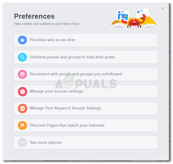 Preferences on Facebook - Click on the first option that says ‘Prioritize who to see first’. This is basically where you can select people and pages from your Facebook lists, and prioritize them so that they would be the ones that appear ‘first’ on your Facebook News Feed.