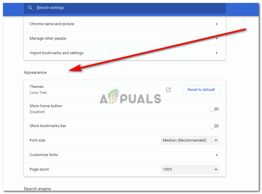 Click on the settings tab here to be directed to all the settings for your Google Chrome and related actions - Clicking on settings will lead you to all the settings for your Google Chrome and related actions. If you scroll down on the same screen, you will find a heading for Appearance.