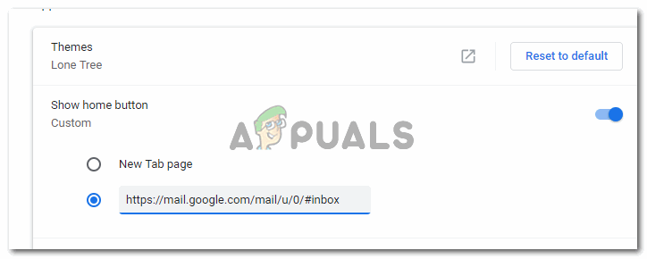 Adding a web address in the settings will make the home tab redirect you to this web page. - I clicked on the Home tab once, and it led me to my Gmail account. Note: If you are signed out of your account, then you will be directed to Gmails home page and not the signed-in version.