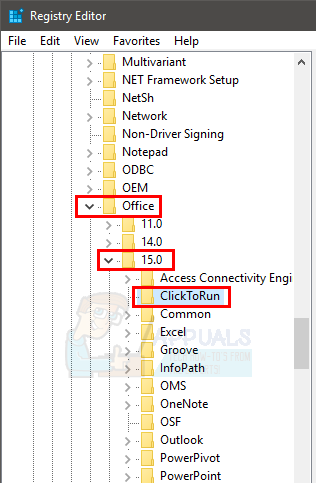 - Locate and double click ClickToRun from the left pane