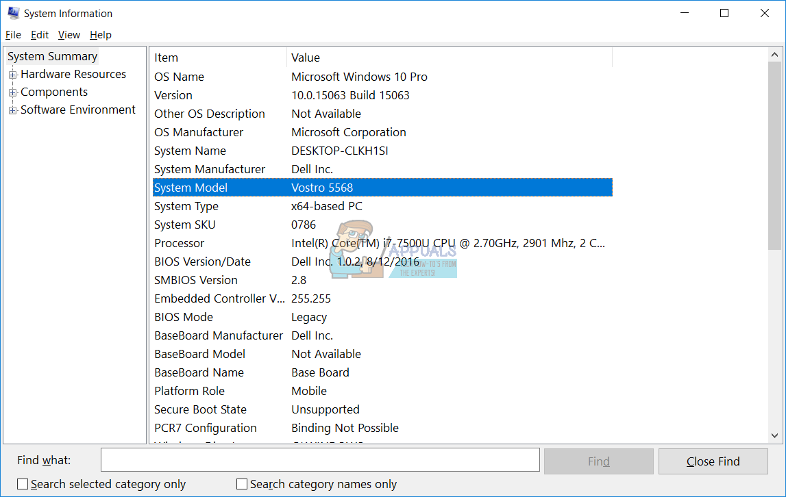 In this method, we will show you how to determine computer or notebook motherboard using tool System Information which is integrated into Windows, too. System Information is available since Windows 98, until now. Except for information about your motherboard, you can find so many details about your hardware components and operating system. There are few ways how can you run System Information, but we will show you one method which is compatible will all operating systems. In this method, we are using notebook Dell Vostro 5568 and Windows 10 Pro.