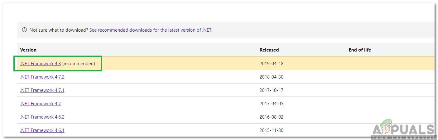 In some cases, the issue might be triggered due to a missing installation of “.NET Framework”. Therefore, in this step, we will be downloading and installing the latest version of the “.NET Framework”. For that: