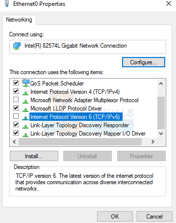 - Hold the Windows Key and press ‘R‘. Type ‘ncpa.cpl‘ and click ‘OK‘. Right-click the network adapter in question and choose ‘Properties’. Then, uncheck ‘Internet Protocol Version 6 (TCP/IPv6)‘ and click ‘OK‘.