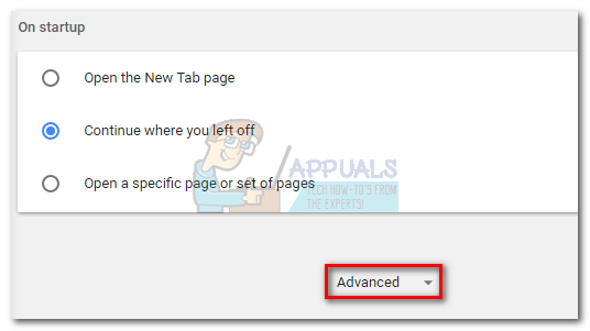 - Scroll all the way down to the bottom of the page and click Advanced.