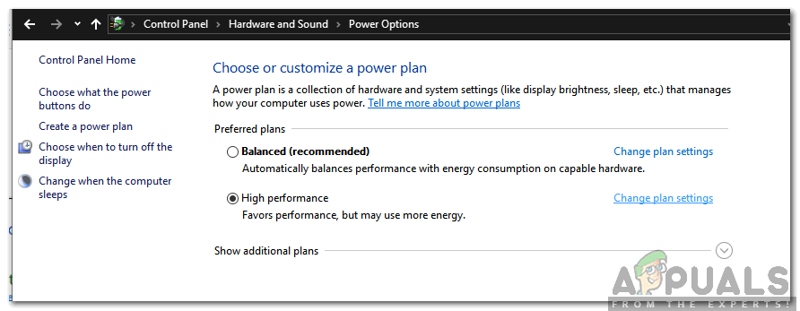 If you are using a laptop this solutions should be the most effective for you but even on a computer, changing the power plan that your operating system is using can be a major factor in determining the speed of your computer. Basically, the more power your hardware consumes, the more room it has for performance improvement. If the hardware is given less power than is actually required, it can cause some serious performance hurdles. Therefore, in this step, we will be changing the computer’s power plan.