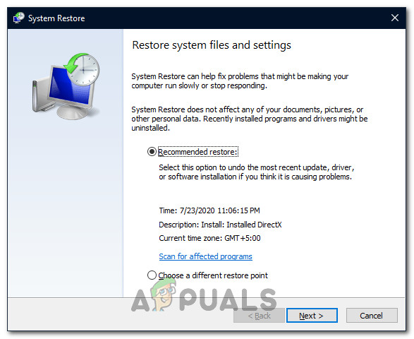 - In the Windows Restore Window, it should give you a “Recommended Restore Point” if you have recently gone through a major change on your computer.