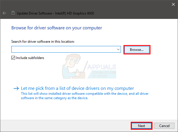 - Click Browse and navigate to the location where you downloaded the driver, select the driver and click Open
