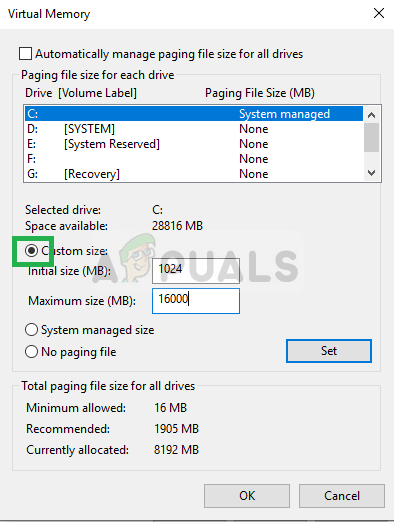 However, in some situations, your PC might be running out of this Page File Size that has been allocated to it. Either you might’ve changed this setting to conserve system storage on your computer or it might’ve been automatically changed. Therefore, in this step, we will be changing it by increasing the Page File Size.