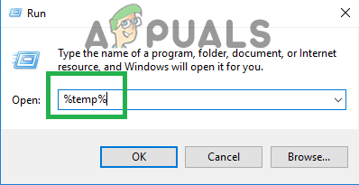 - Type in “%temp%” and press “Enter” to launch the temporary files folder.