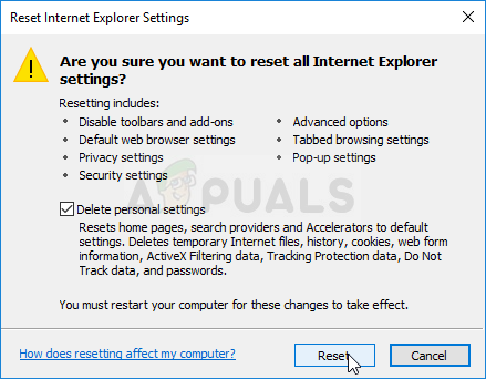 - Navigate to the Advanced tab, and then click on the Reset Select the Delete personal settings check box if you would like to remove browsing history, search providers, Accelerators, home pages, and InPrivate Filtering data. This is recommended if you really want to reset your browser but selecting this is optional if you have followed all steps from Solution 1.