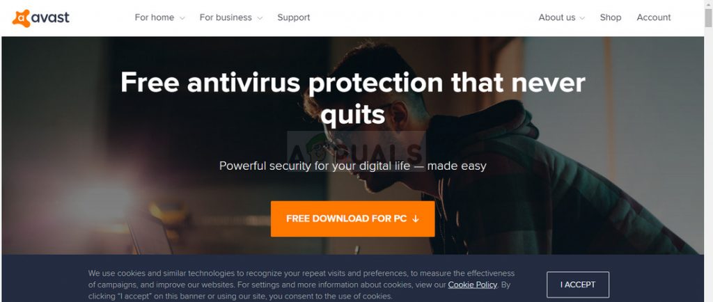 - Download the latest version of the Avast installation by navigating to this link and clicking the Download Free Antivirus button in the middle of the website.