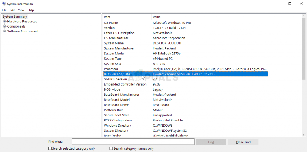 - Find out the current version of BIOS utility you have installed on your computer by typing “msinfo” in the search bar or the Start menu.
