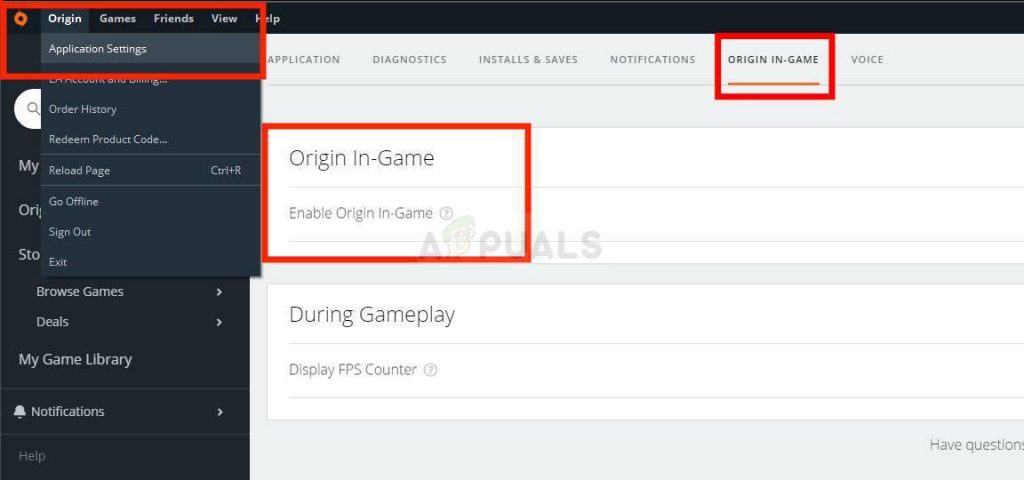 - Make sure you confirm any dialogs which may appear which should prompt you to confirm the choice with admin privileges and Origin should launch with admin privileges from the next startup. Open it by double-clicking its icon, click the Origin option from the menu bar and choose Application Settings from the menu which will appear.