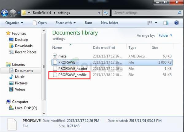 - Navigate to the folder’s location in the File Explorer simply by opening a folder and clicking Documents from the left navigation pane or by searching for this entry in the Start menu. Anyway, in Documents, navigate to Battlefield 1 >> settings.
