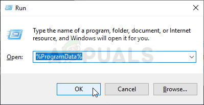- Either click the Start button or the search button next to it and type “Run” or use the Windows Key + R key combination in order to bring up the Run dialog box. Type in “%ProgramData%” and click Enter.