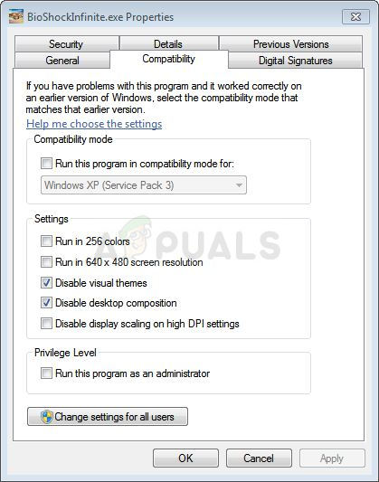 Note: If you are a Windows 8 use, check the Run this program in compatibility mode for box and choose Windows 7 from the dropdown menu which will appear. Check to see if BioShock Infinite still crashes!