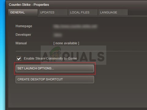 - Right-click on the game’s icon in the list and choose the Properties option from the context menu which will show up. Stay in the General tab in the Properties window and click the Set launch options button.