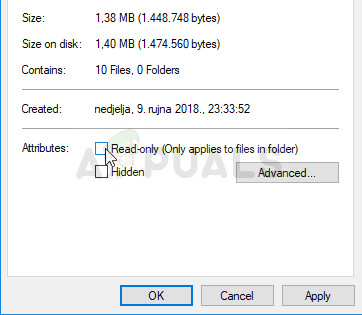 - Right-click this folder and choose Properties from the context menu. Under the Attributes section, clear the box next to the Read-only entry and apply the changes.