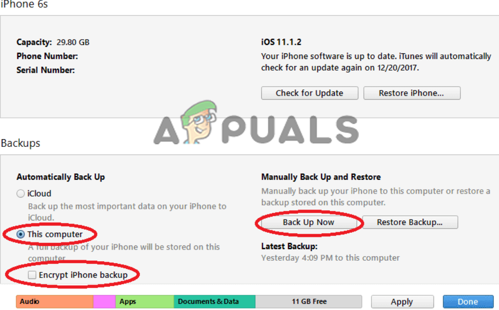 - Make sure to check the This computer option and uncheck the Encrypt iPhone backup
