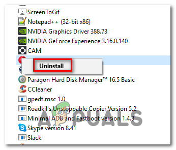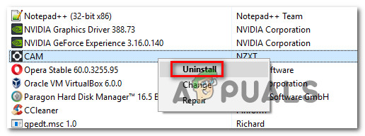 Some users have discovered that in their case, the issue was being caused by a conflict between the CAM application and Corsair Utility Engine (CUE). We haven’t managed to find any relevant information on why the two software apps don’t play well together, but several affected users have reported that they managed to resolve the issue by uninstalling Corsair Utility Engine and rebooting their computer.