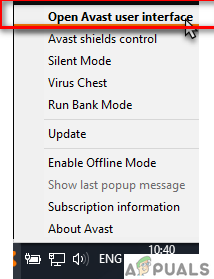 - Go to your antivirus settings by right-clicking your antivirus icon in your taskbar and access the user interface.