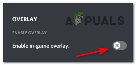 Disable the overlay in discord - After you manage to disable the overlay, save the changes and launch Cyberpunk 2077 to see if the error still occurs.