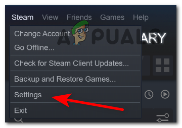 - Open the Steam app, and click on Steam located in the top left corner, then click on Settings.