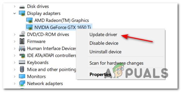 - Inside the expanded menu, you will find the GPU drivers. Right-click the GPU driver you want to update, then click on Update driver.