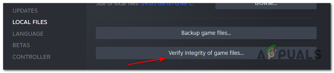 Opening the Local Files Section - Then, click on Verify integrity of game files to start the verification, and wait until it is complete.