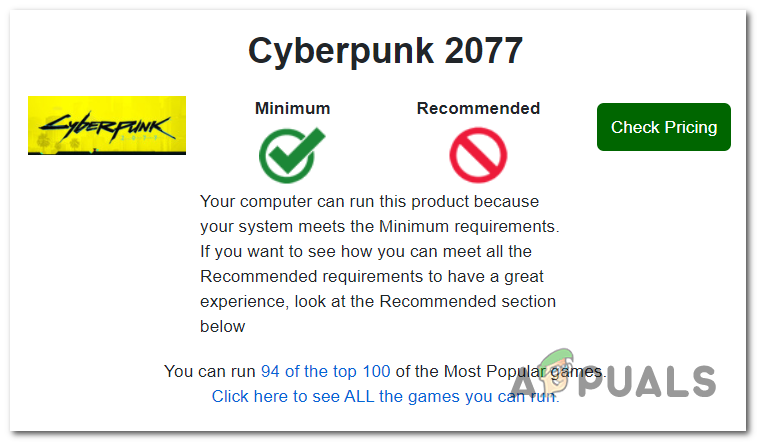 Checking if PC is strong enough to run Cyberpunk NOTE: If you notice the checkmark icon under Minimum, it means that your system is strong enough to run Cyberpunk 2077.
