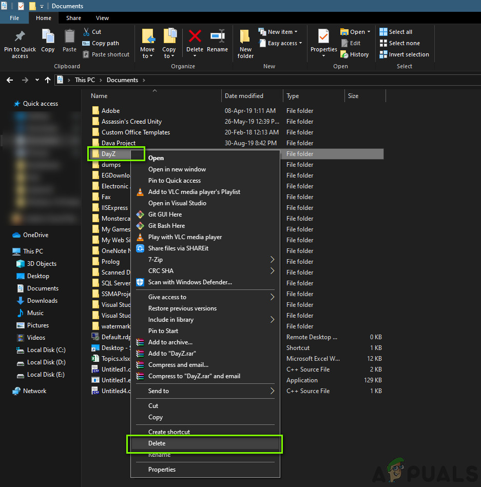 Deleting DayZ Configuration Files - Now, press Windows + E to launch the explorer and navigate to the following address: