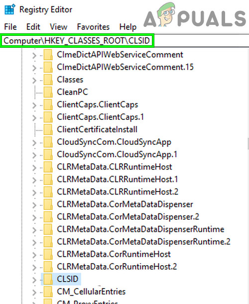 Running the Registry Editor - From the Registry Editor, expand the HKEY_CLASSES_ROOT folder, and the CLSID folder inside.