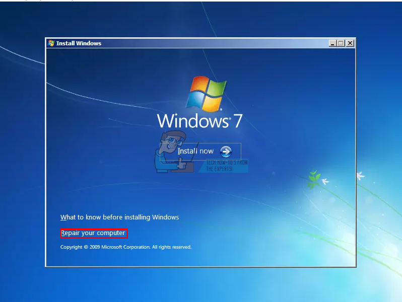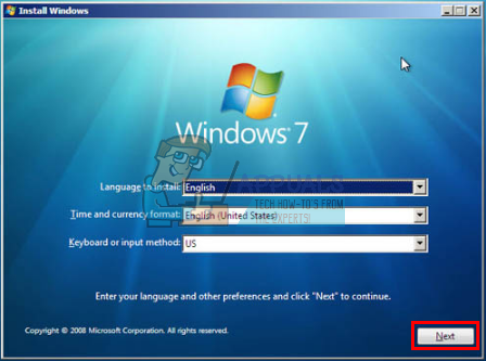 - Insert the Windows 7 installation disc in the drive and start the computer.