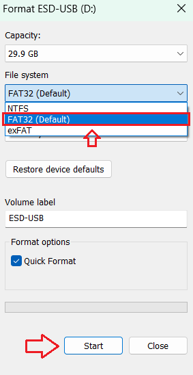 - Select the appropriate file system.