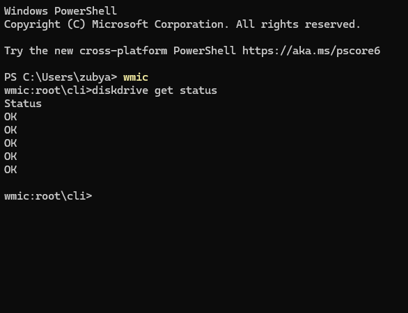 wmic diskdrive get status