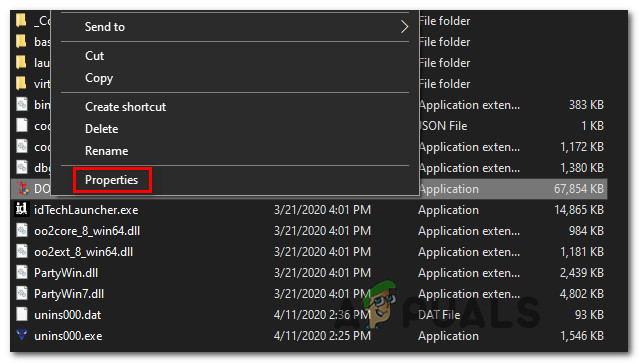- Once you get to the correct location, right-click on the game executable and click on Properties from the context menu that just appeared.