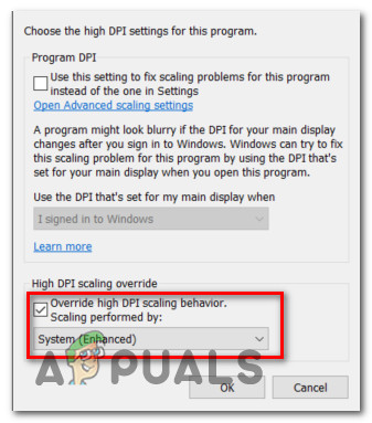 - High DPI Scaling is not supported by application – As it turns out, certain legacy applications will trigger this error because the app graphical engine doesn’t support High DPI Scaling. Several users that found themselves in a similar situation have resolved the issue by changing the HIgh DPI Scaling to System instead of Application.
