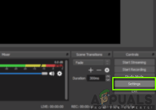 - Launch your OBS Studio and navigate to Settings as we did earlier in the solutions.