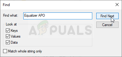 Find Next in the registry - Visit this link to download the latest Equalizer APO version. Install it following the on-screen instructions, and check if the issue persists.