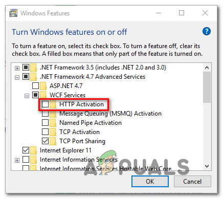 - Once you get there, check the box associated with HTTP Activation and click Ok to confirm the changes.