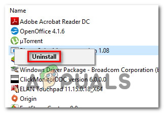 - Press Windows key + R to open up a Run dialog box. Then, type “appwiz.cpl” and press Enter to open up the Programs and Features screen.