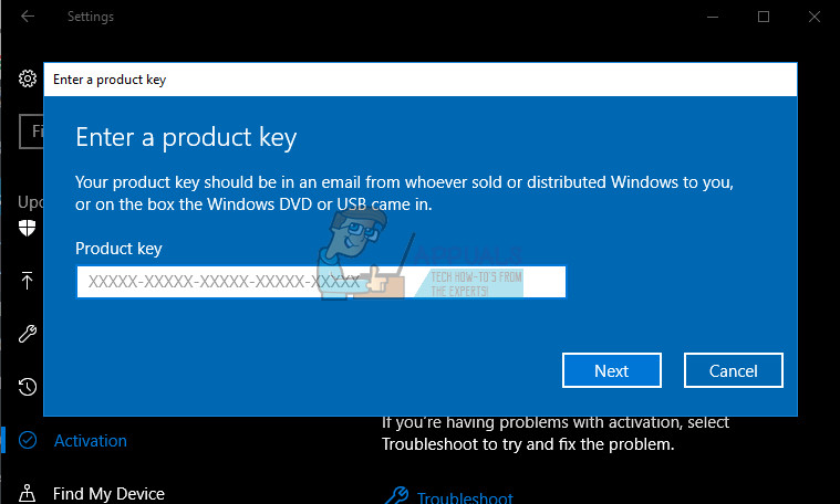 Typically it happens when a new license key is placed to upgrade Windows in OEM systems. These systems are typical due to the fact that they have a pre-installed / activated Windows 10 systems and integrated System‘s Motherboard BIOS due to the sake of security. Normally, the upgrade process should be executed, but due to the failure of Windows activation mechanism, the process cannot be run successfully, which is why the below shown error message 0xc004f014 shows up.