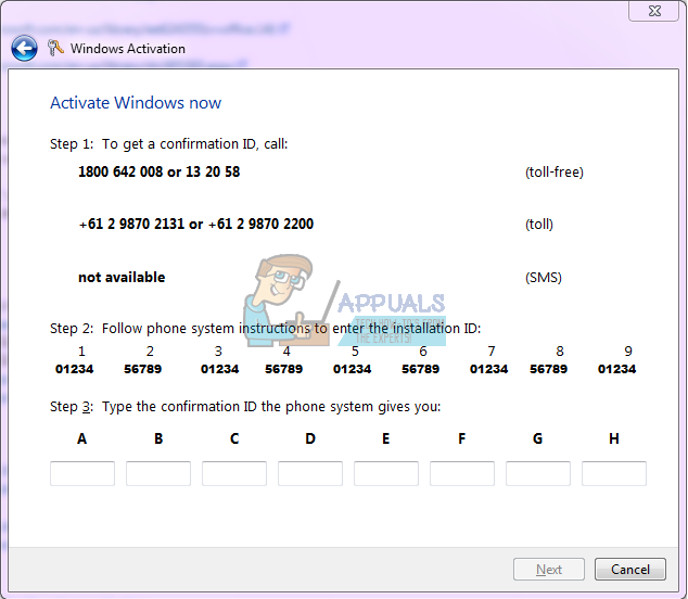 - You will need to provide your Installation ID by reading it out loud during the call and you will be provided with your Confirmation ID which should be enough to activate your copy of Windows.