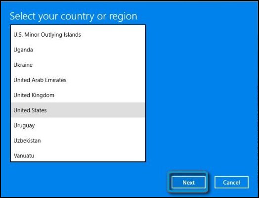 - A screen should appear asking you to choose your country or region. Make sure you choose the correct one because of the phone call later on.