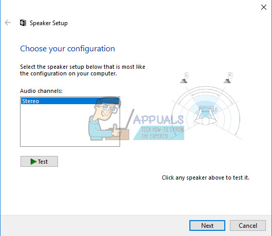 - Click next and unselect the speakers that fail to play a sound.