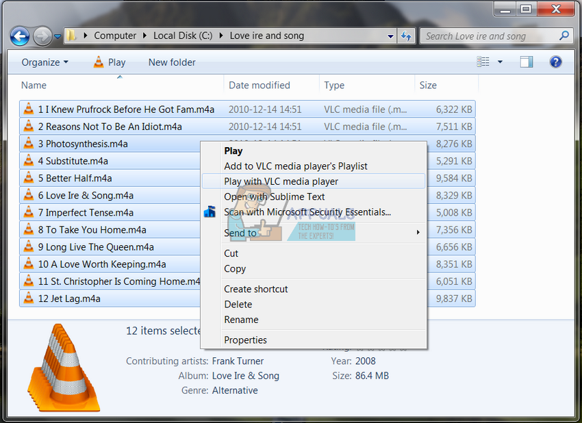 - Right-click on some of your music files and expand Open with. Select VLC media player from the list.
